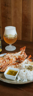 - Grelhado mista mar e terra, feita ao carvão com: Lombinho de porco, Coxa de frango, bife da casa + ovos estrelados e Salchicha alentejana; - Croquetes e montaditos; - Camarão grelhado; - Morcela com pure de ananas e hortelã;, - Batatinha caseira; - Arroz; - Salada mista.